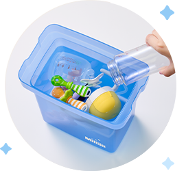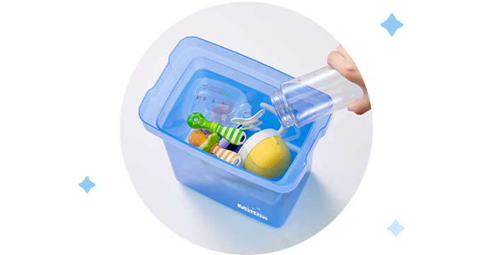ベビーグッズを洗い、薬液につけておくだけのカンタン消毒法!調乳直前までつけておけるので、とっても衛生的です。ミルトン専用容器を使えば薬液作りがさらにカンタン。育児に奮闘中のママ・パパをやさしくサポートします。